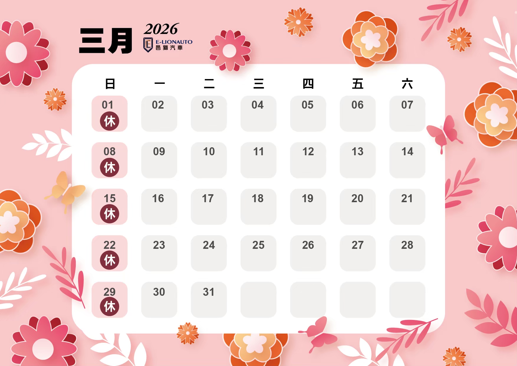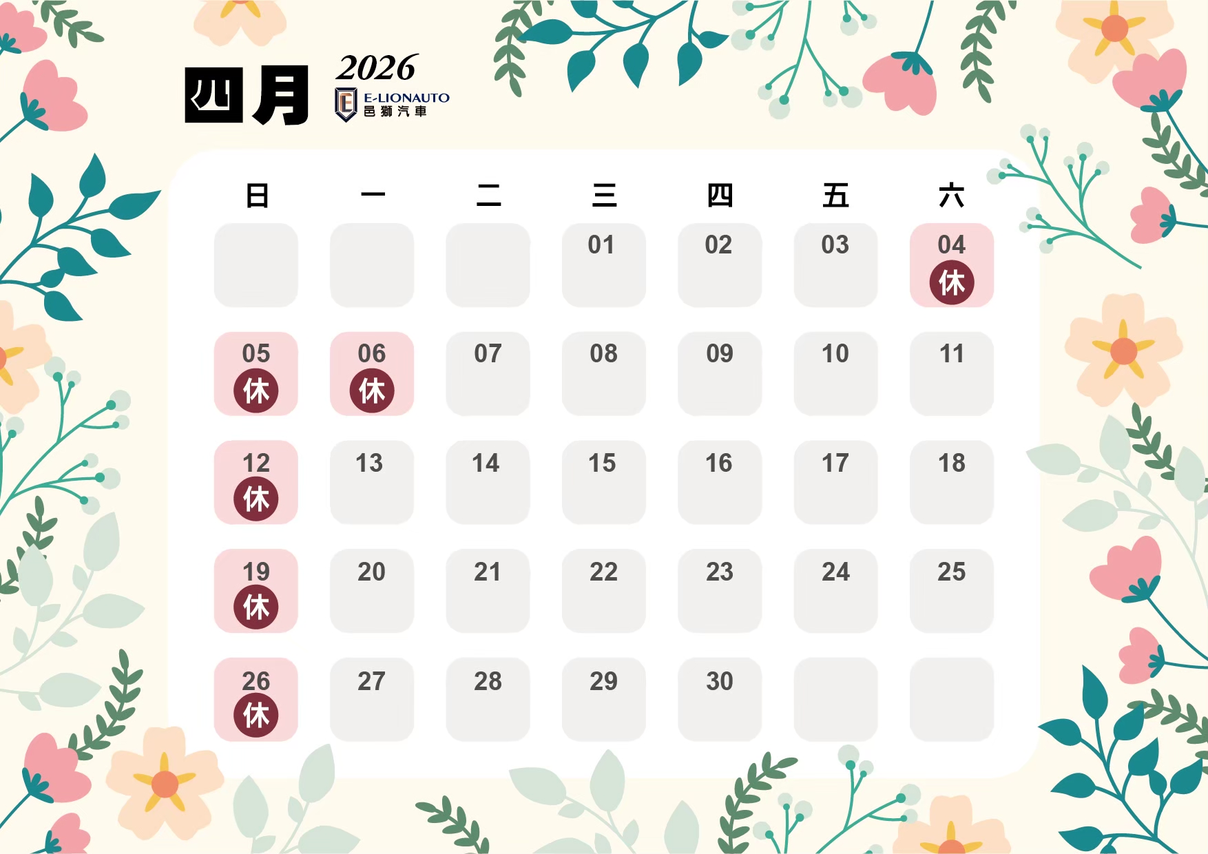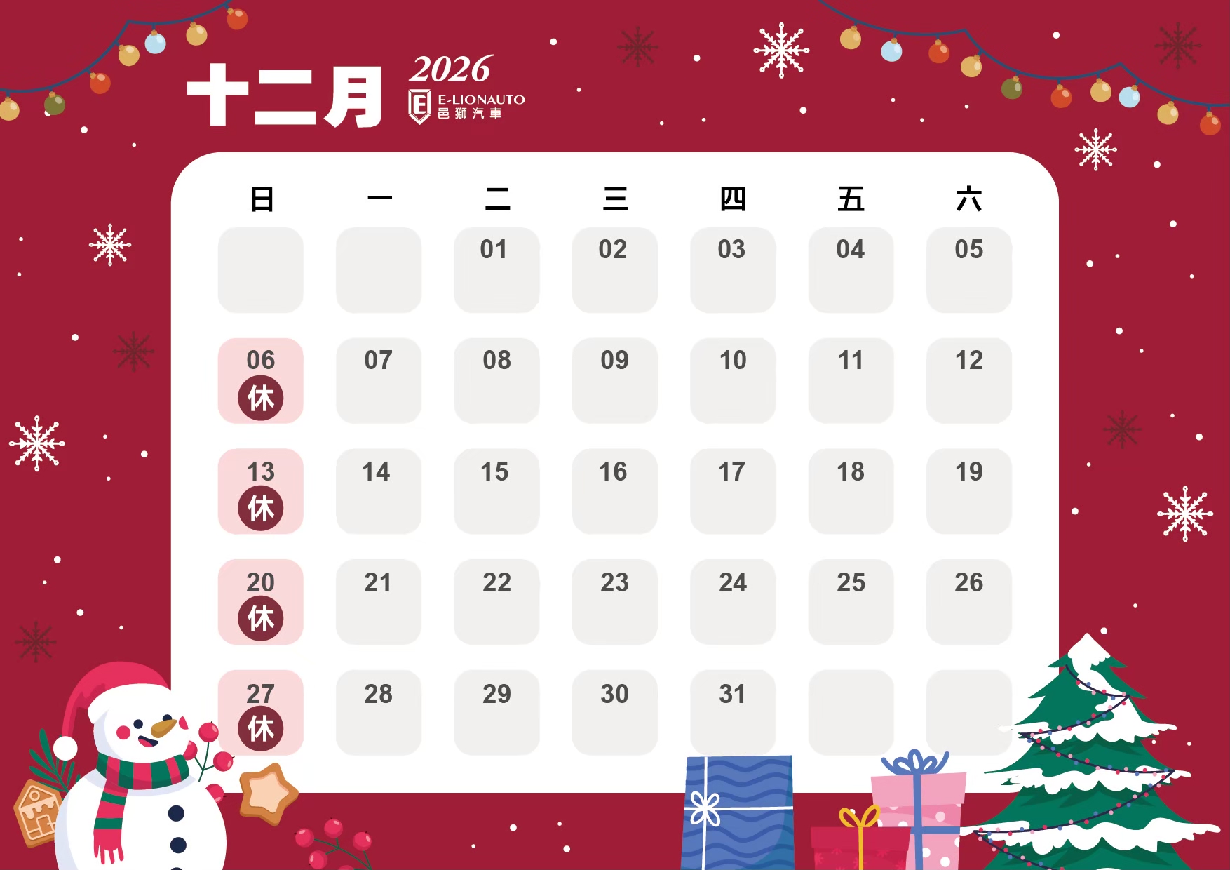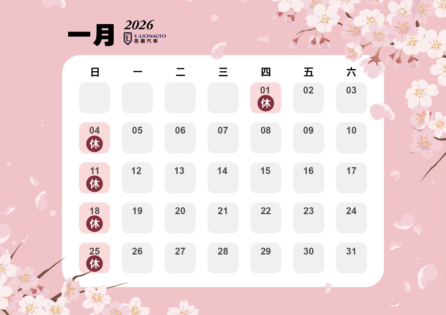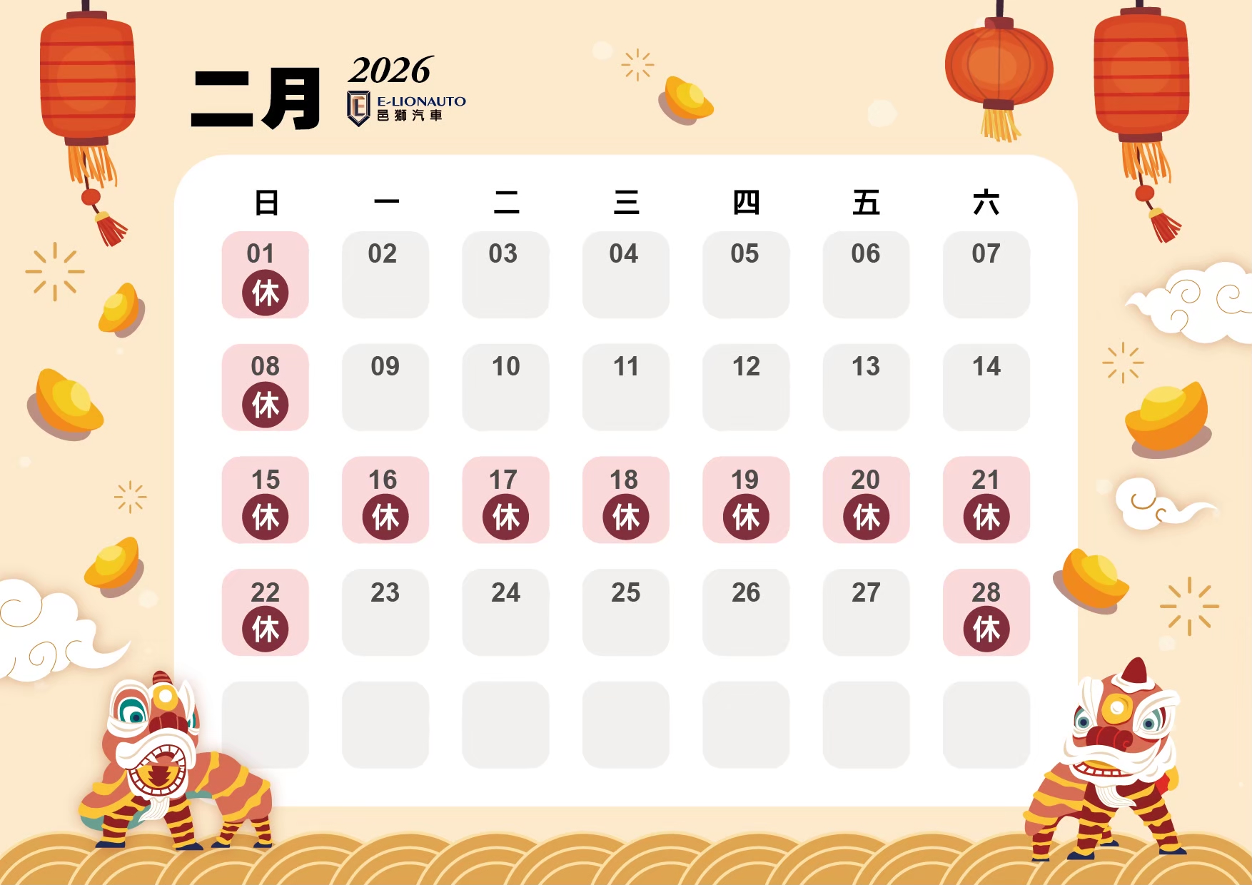 邑獅2026公休表